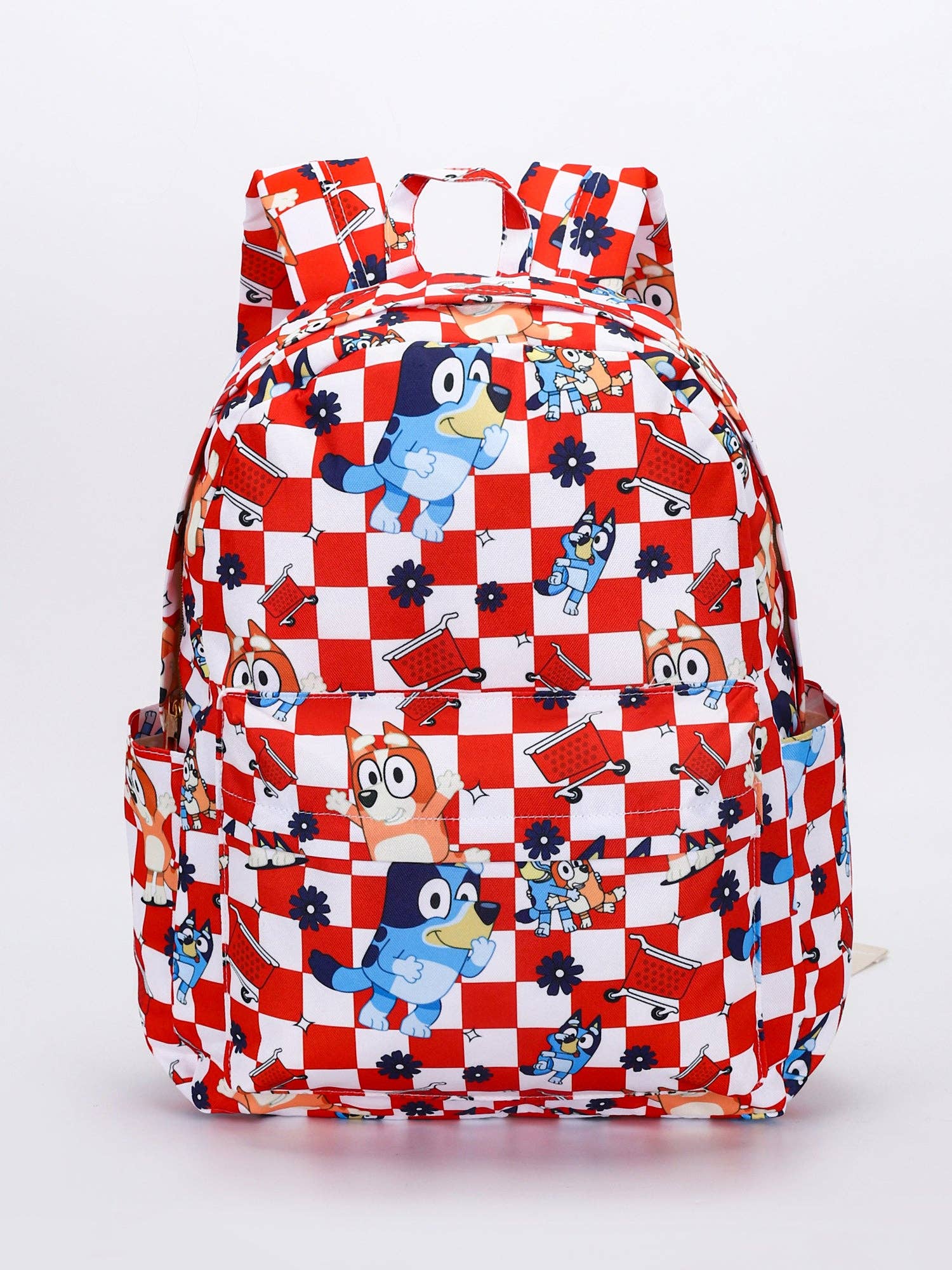 * Size:13*5*17 inches Red Checkered Character Kids Backpack "The backpack boasts a spacious size of 13*15*17 inches for all your child's essentials.