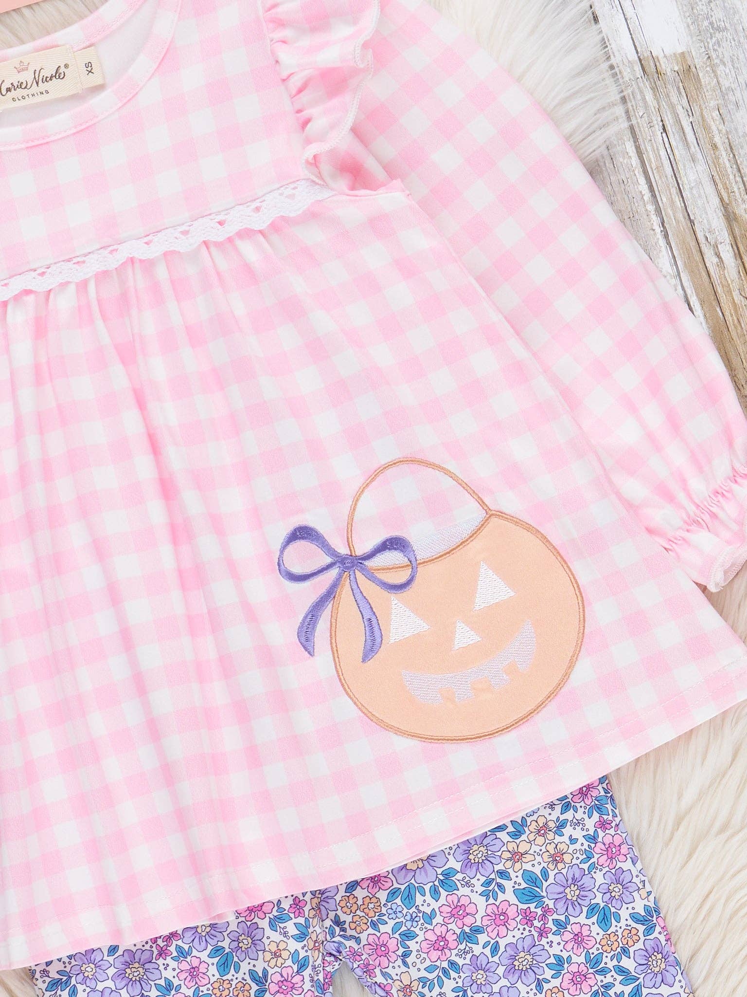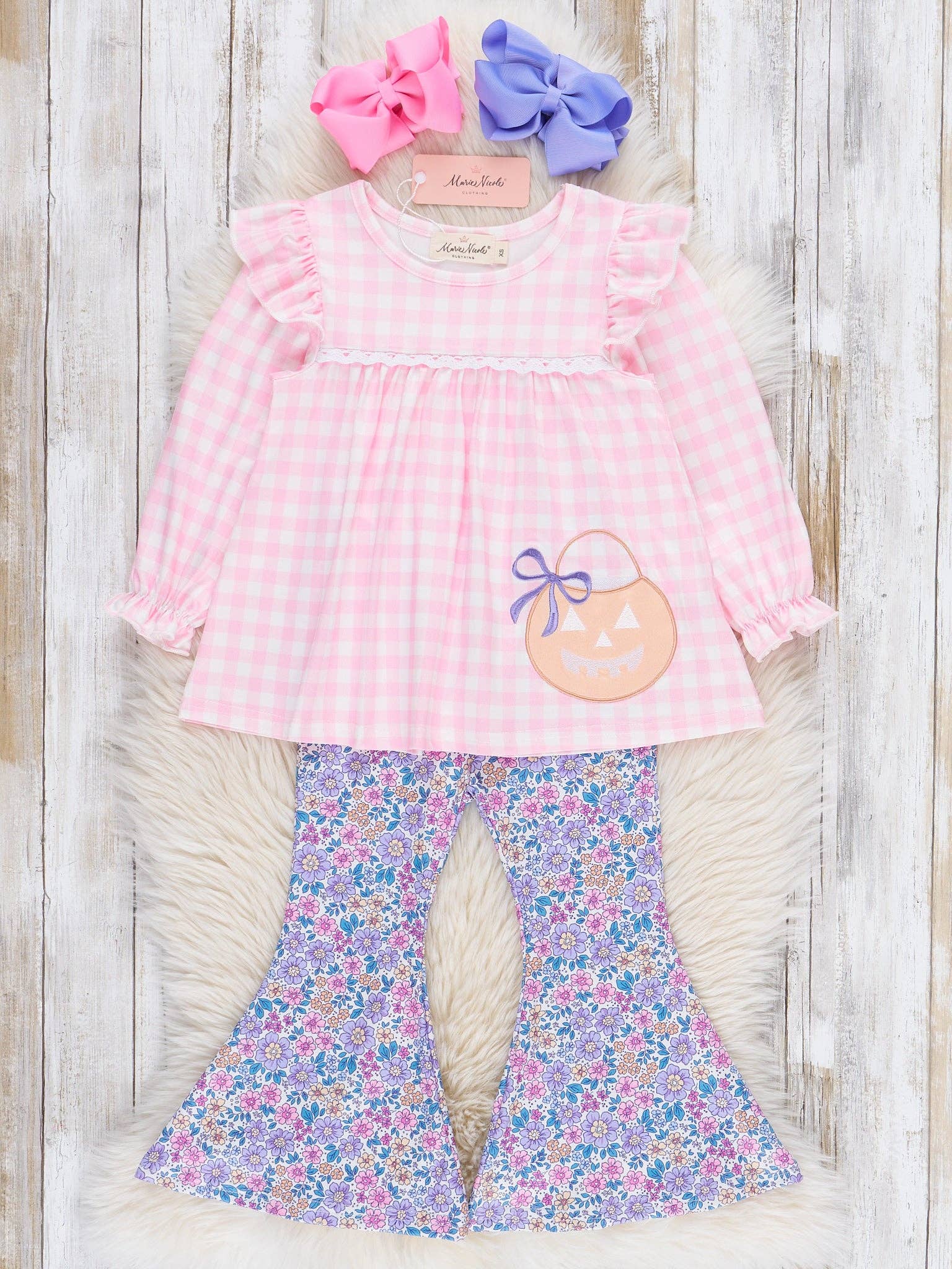 The Trick or Treat & Petals on Repeat Outfit is a playful and festive choice perfect for celebrating Halloween and autumn days. Featuring a charming delicate floral, this outfit from Marie Nicole Clothing blends seasonal whimsy with cozy comfort. Made from soft, breathable fabric and finished with bell bloomers, it’s ideal for pumpkin patch visits, family gatherings, and picture-perfect fall moments. * Fits true to size. * Top: 95% Polyester / 5% Spandex * Bottoms: 95% Polyester / 5% Spandex * Accessories sold separately. *